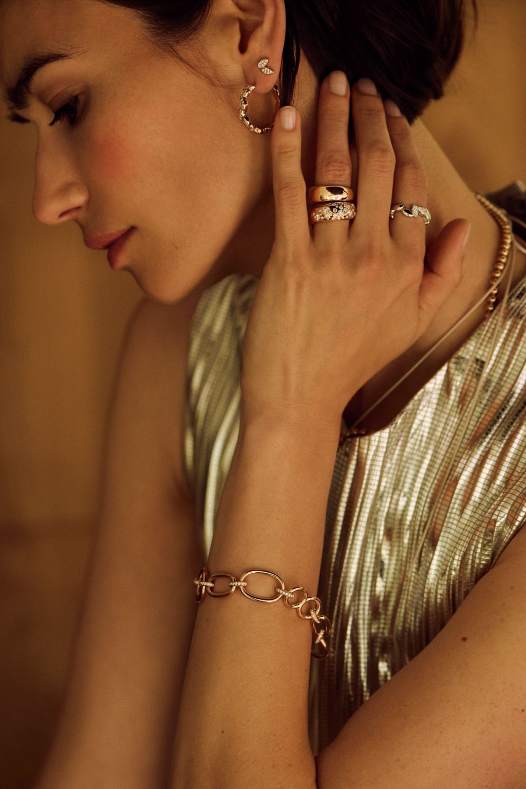 De glanzende Niessing Topia collectie weerkaatst het licht en neemt de kleuren van de omgeving aan. Al naargelang hoe het licht valt, schitteren het goud en platina als een vliesdun zeepbelletje. Kenmerkend voor het Bauhaus design en ook voor Niessing is het principe van vorm volgt functie.
