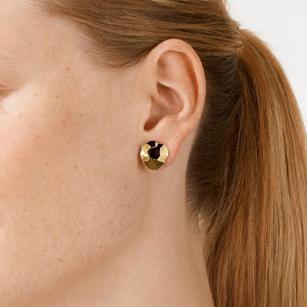 een paar 18 krt oorstekers van Niessing model Topia in kleur geelgoud 15mm.