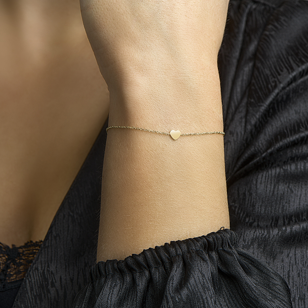 Geelgouden armband met een hart. De draaglengtes zijn 17 en 18.5cm met een schakelbreedte van 1.1mm.