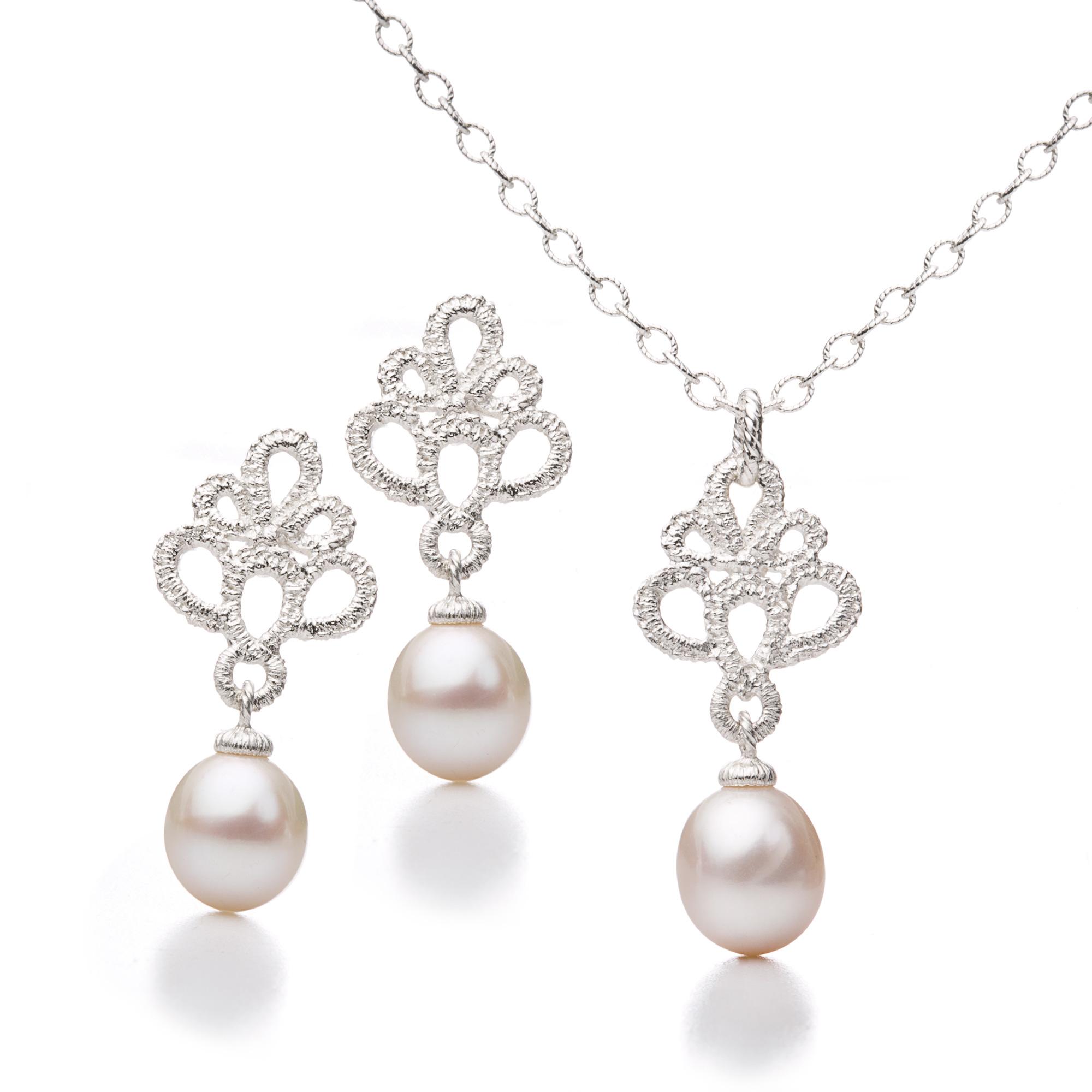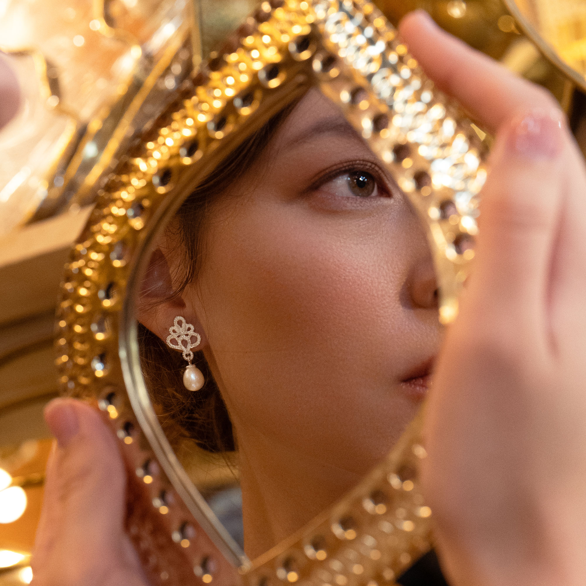 Een paar 925/1000 zilveren oorstekers van Brigitte Adolph model Medea Pearl , waaraan een zoetwaterparel 8-8,5mm
