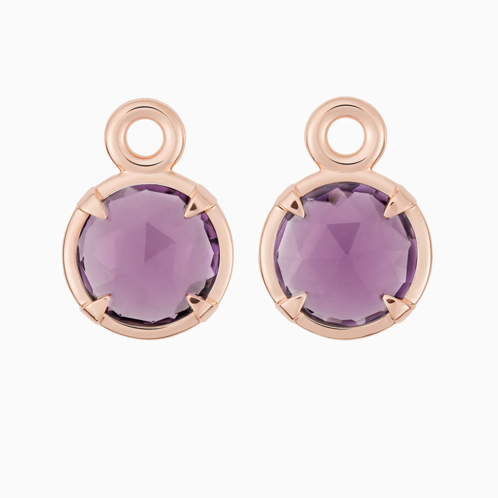 Mira Mira aanhangers met briolet geslepen amethyst aan 16mm oorringen; los van elkaar verkrijgbaar.
