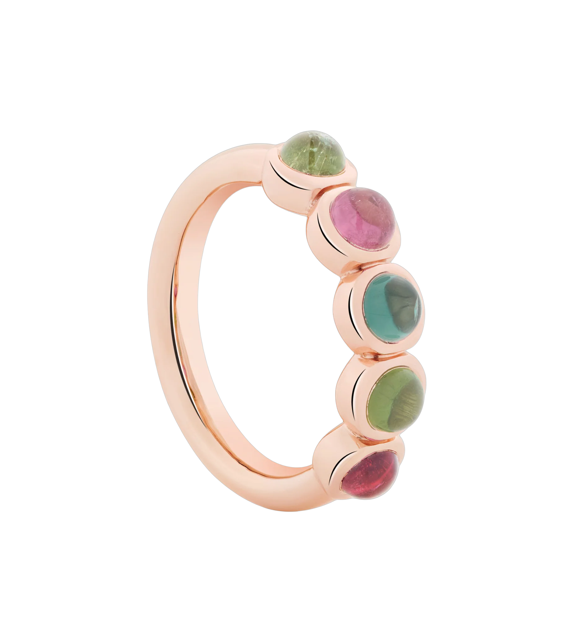 Een 18 krt roségouden Ring Bron model Confetti met 5 toermalijn stenen