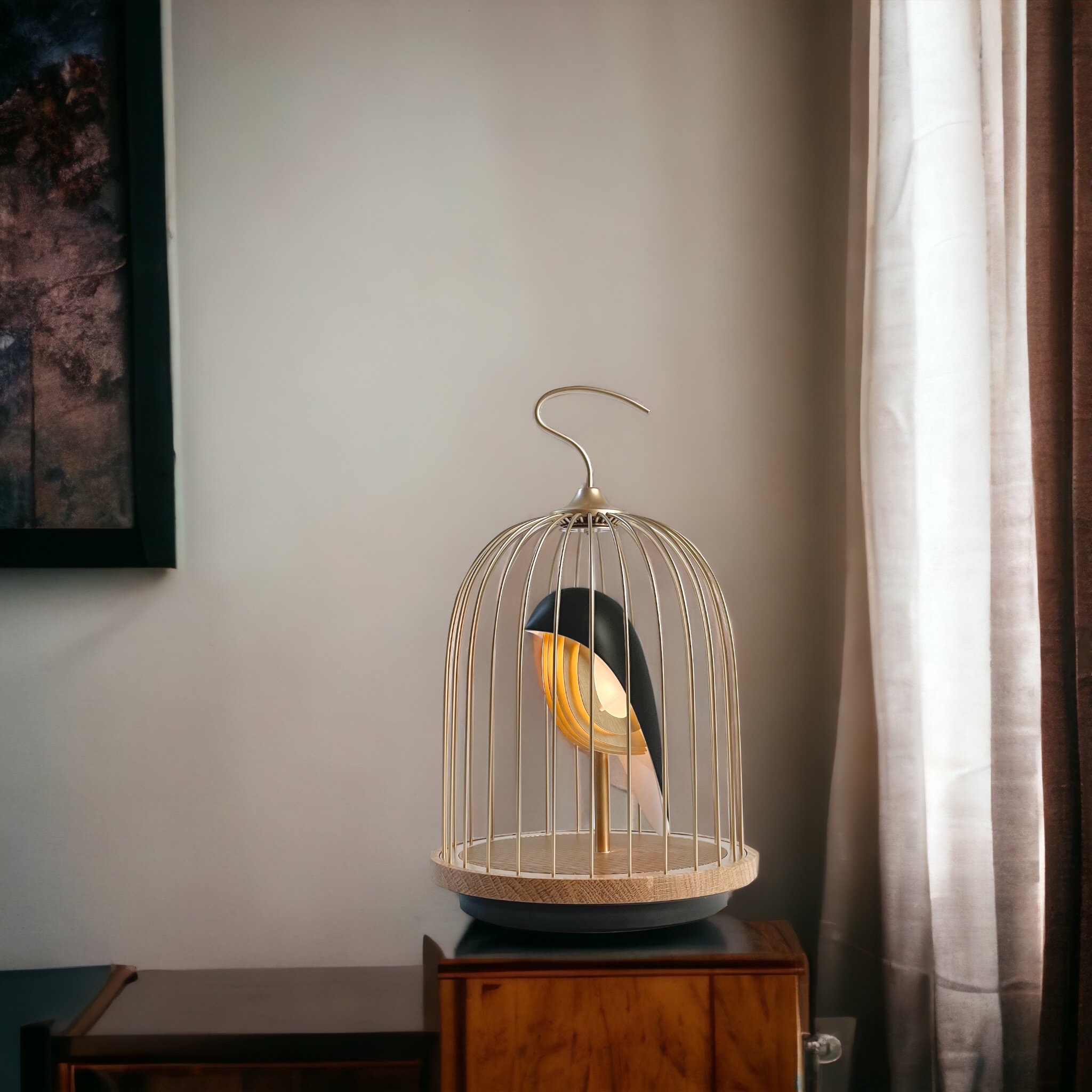 JINGOO GOLD BLACK is een prachtige matzwarte vogel aangevuld met een matgouden vogelkooi. De matgouden afwerking geeft een luxueuze nieuwe toevoeging aan de collectie en de combinatie van goud en zwart straalt een klassieke verfijning uit. Dit object geeft niet alleen een luxueus tintje aan uw interieur, maar zorgt ook voor geluid van hoge kwaliteit en sfeerverlichting - allemaal bedoeld om u te helpen ontsnappen aan het snelle tempo van het moderne leven.