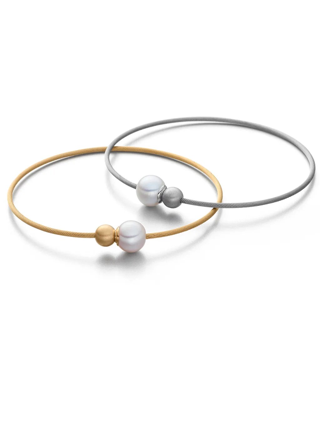 Een stalen armband Eva Strepp model Two met tahiti parel en stalen kogel.