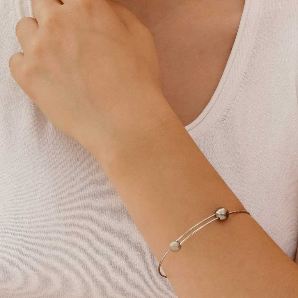 Een stalen armband Eva Strepp model Twin met 1 Tahiti parel en stalen kogel.