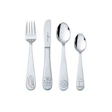 Een stalen 4 delig kinderbestek met voetbal afbeelding