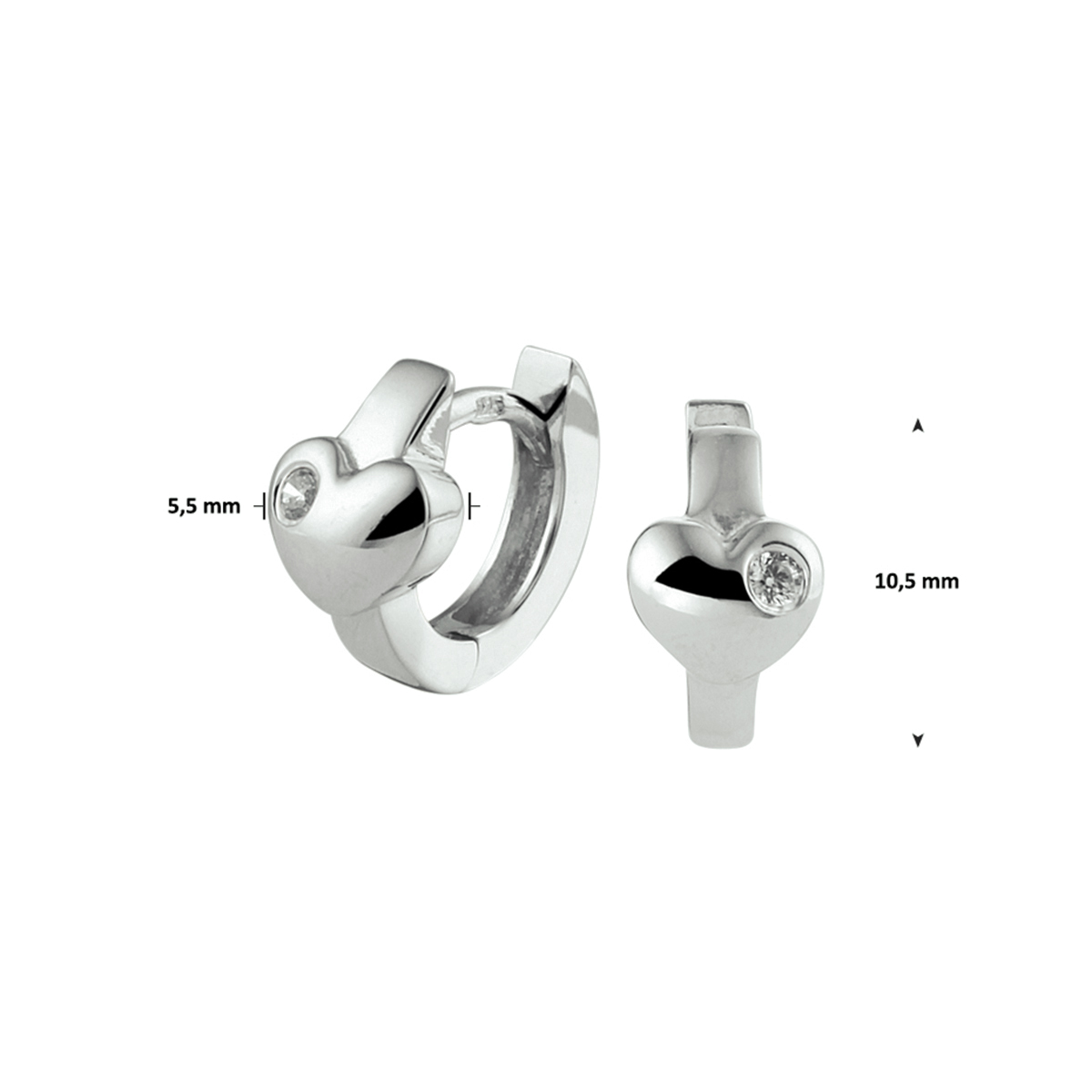 Gerhodineerd 925 zilveren klapoorringen uitgevoerd met een hartje. De afmeting van de oorringen is 10.5x5.5mm.