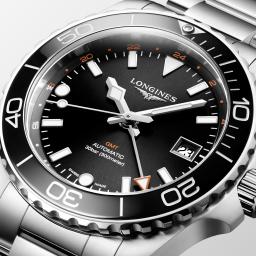 Longines HydroConquest GMT heeft een edelstalen kast met een diameter van 41 mm. Dit model is voorzien van een nieuwe uni directionele gekerfde lunette van blauw keramiek met een lichtgevende capsule. Het horloge herbergt een Zwitsers automatisch uurwerk en levert een gangreserve van een indrukwekkende 72 uur. De kast is tot 300 meter waterdicht.