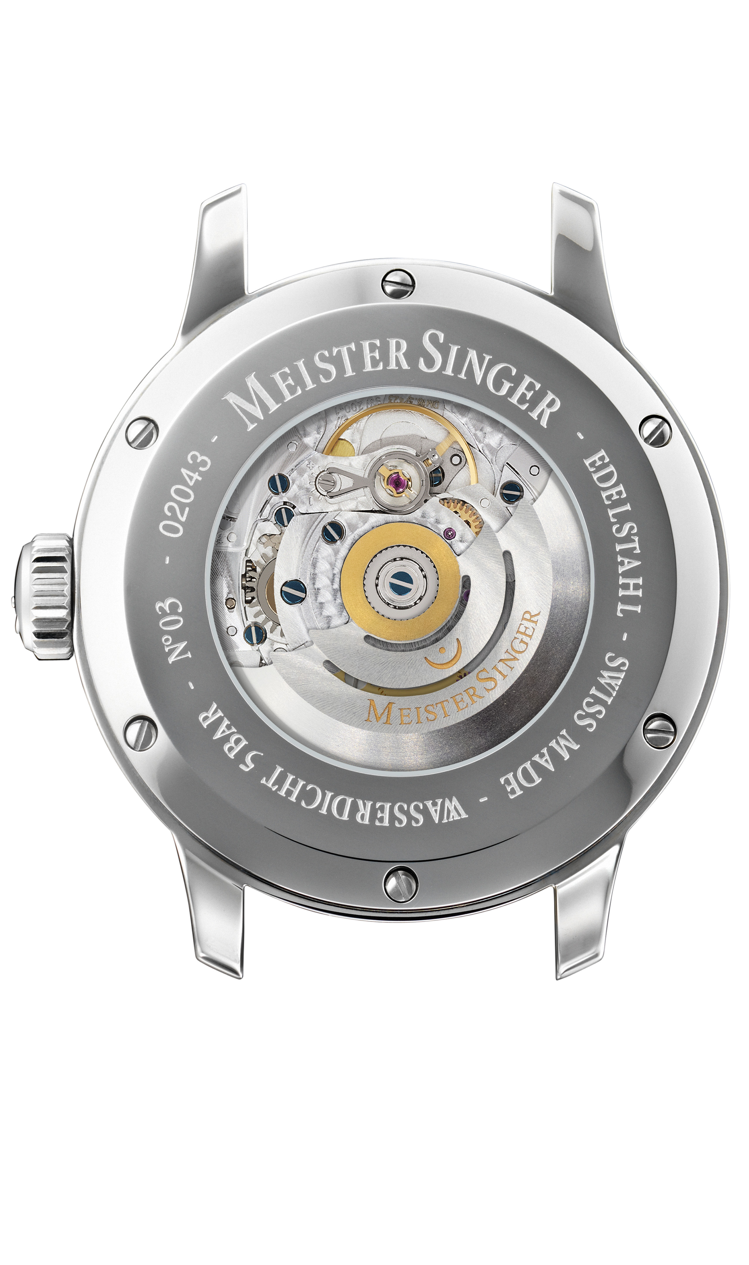 Als zus van de oer-MeisterSinger N°01 zijn ook bij de N°03 alle vormgevingsdetails terug te zien die tot op de dag van vandaag de hele collectie bepalen: de zakelijke typografie met consequent tweecijferige uuraanduidingen van 01 tot 12, de streepjeshiërarchie rond de wijzerplaat en de uurwijzer met naaldpunt. Duidelijker, eenvoudiger en ingetogener kan men een horloge niet vormgeven. Tot op de dag van vandaag is de N°03 in de voor MeisterSinger karakteristieke ivoorkleur erg populair.