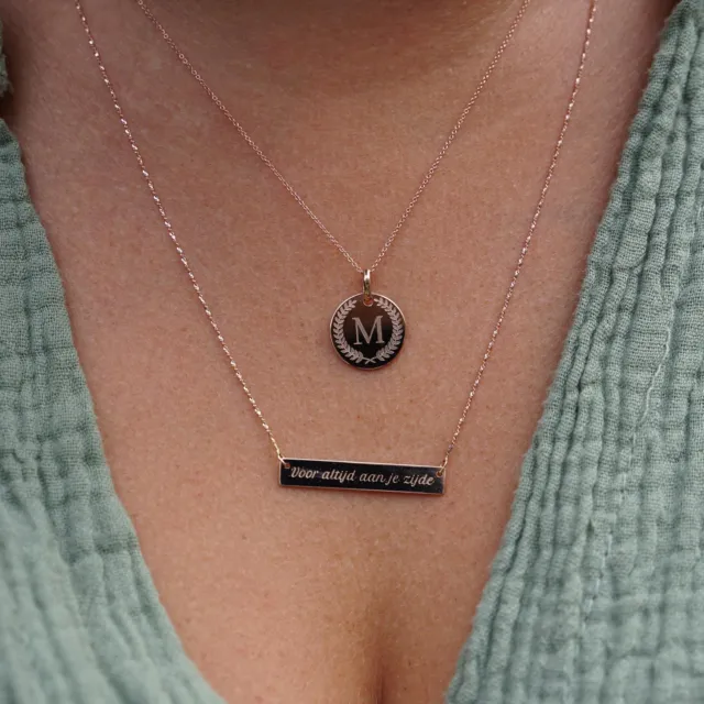 Met de Minitials Middel Disc Olijftak Ketting draag je jouw geliefden altijd dicht bij je hart. Kies initialen of symbolen in het unieke Minitials olijftak ontwerp en stel jouw perfecte Minitials ketting samen.
