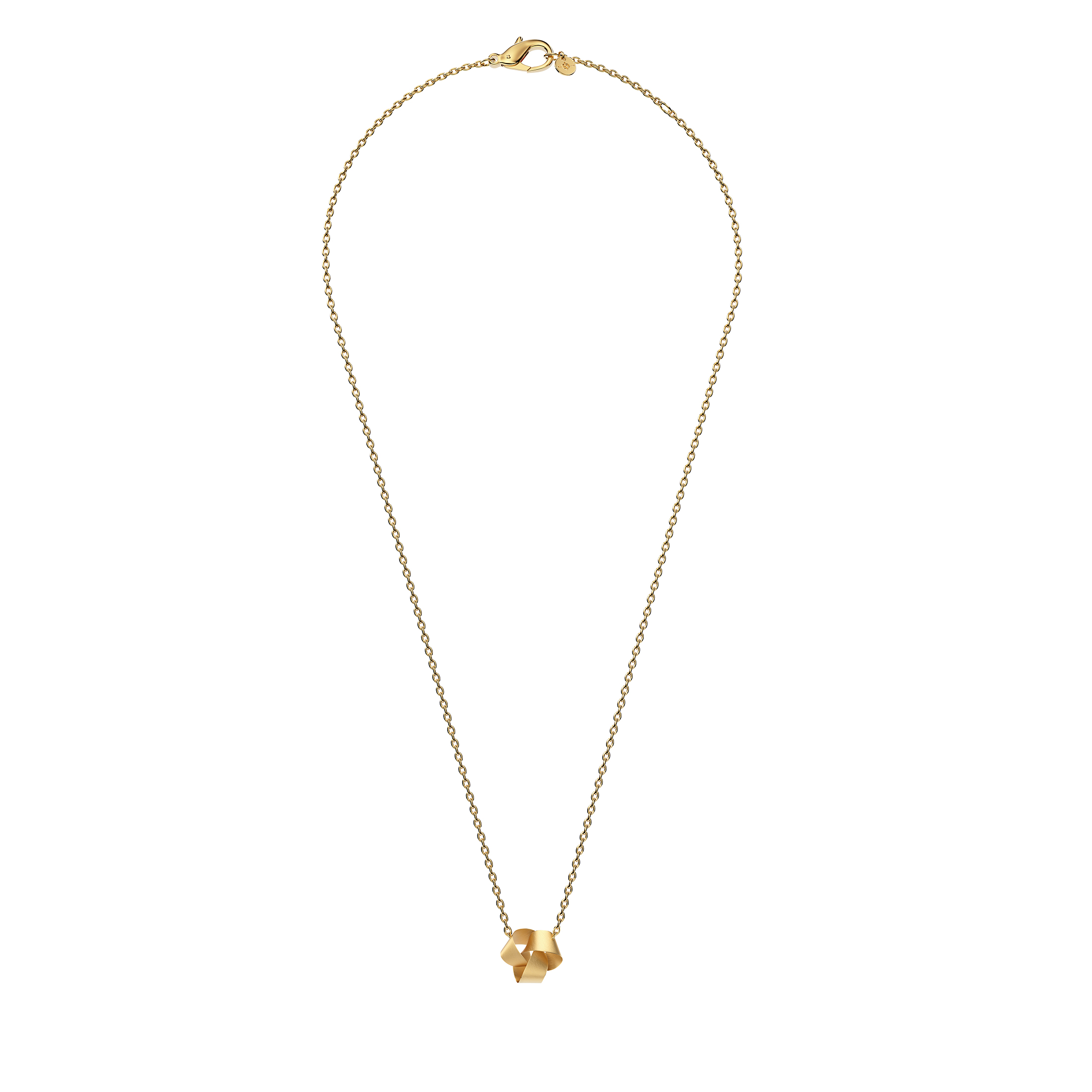 een 18 krt geelgouden collier van Niessing met Papyr hanger ertussen . lengte is 45 cm.