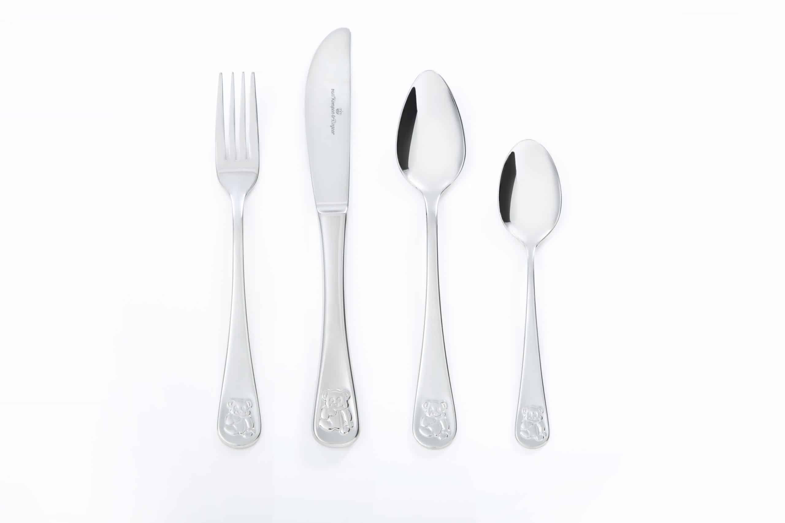 een stalen kinderbestek van Kempen en Begeer Beer 4-delig