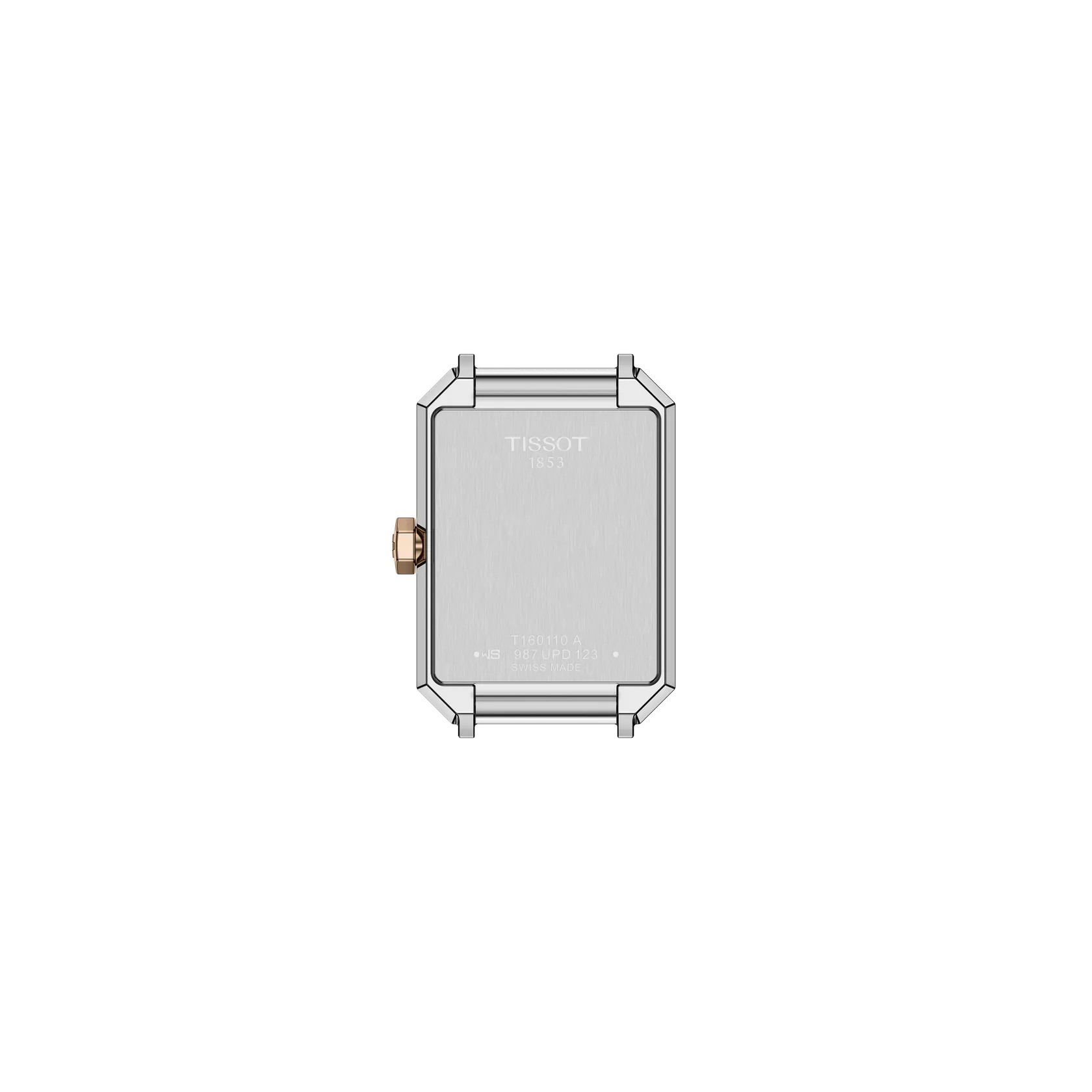 een damespolshorloge Tissot model SRV met parelmoer kleurige wijzerplaat , rosé kleurige lunette en een  stalen band.