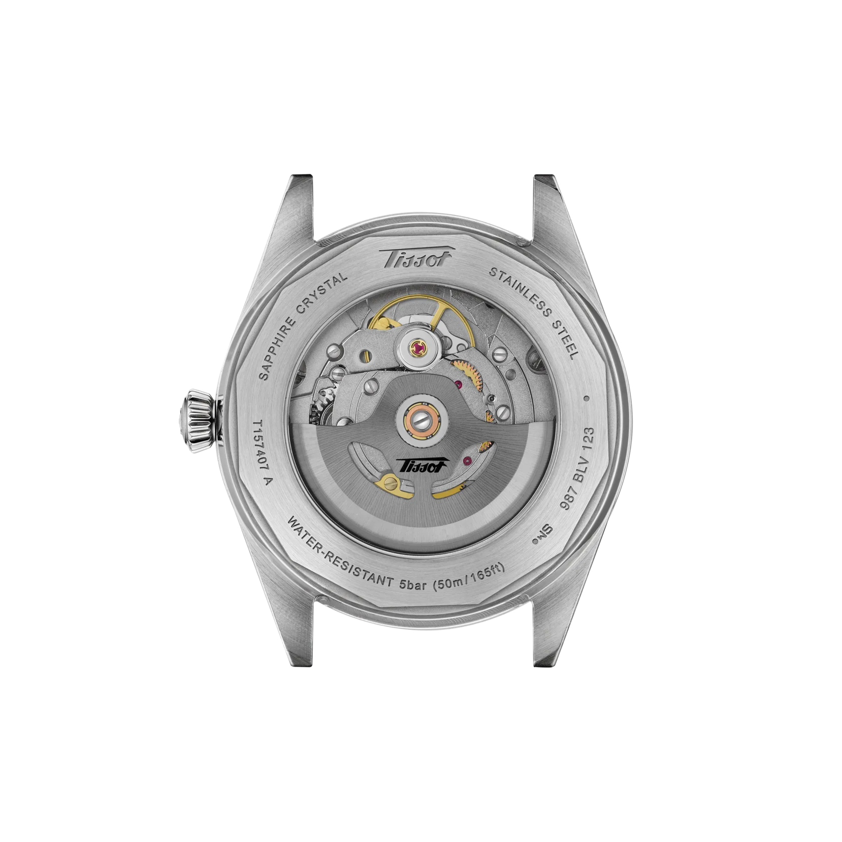 een heren polshorloge Tissot model Visodate met een blauwe wijzerplaat