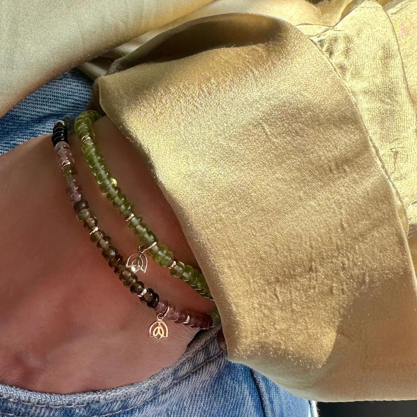 Y&G edelstenen armband met Tourmalijn & 14k goud 10 beads en tulp logo